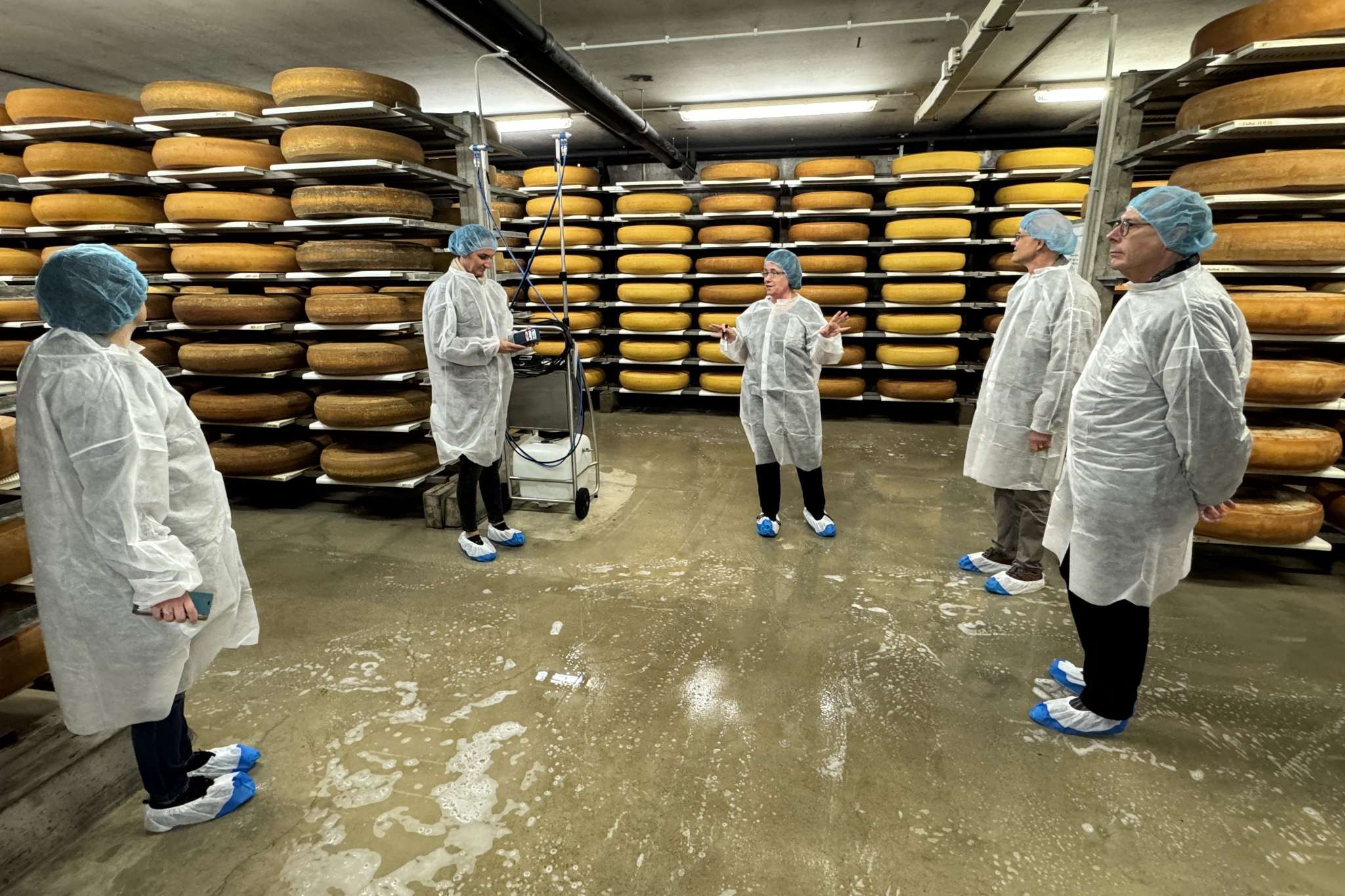 Erfahren Sie mehr über die Reifung von Emmentaler AOP und Le Gruyère AOP bei einer Besichtigung der unterirdischen Kellerräume im Käsehaus der Gourmino AG in Langnau im Emmental.